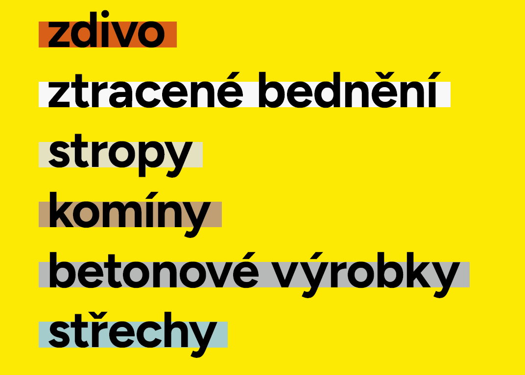 Speciálního rozdělení se dočkaly i naše nejdůležitější produktové kategorie v sortimentu materiálů pro hrubou stavbu. Každá dostala svou specifickou barvu. Co na tuhle paletu říkáte? Nám se líbí!